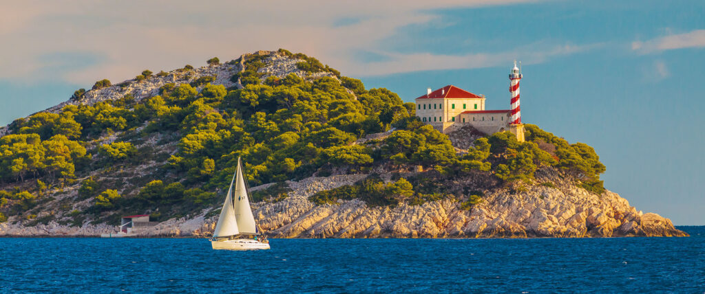 Segeln rund um die Kornaten-Inseln Die Kornaten sind ein Archipel mit über 140 Inseln – karg, wildromantisch und nur per Boot zugänglich. Hier zu segeln ist wie Meditation auf dem Meer: kristallklares Wasser, versteckte Buchten und absolute Ruhe machen es zum perfekten Natur-Wellness-Erlebnis.