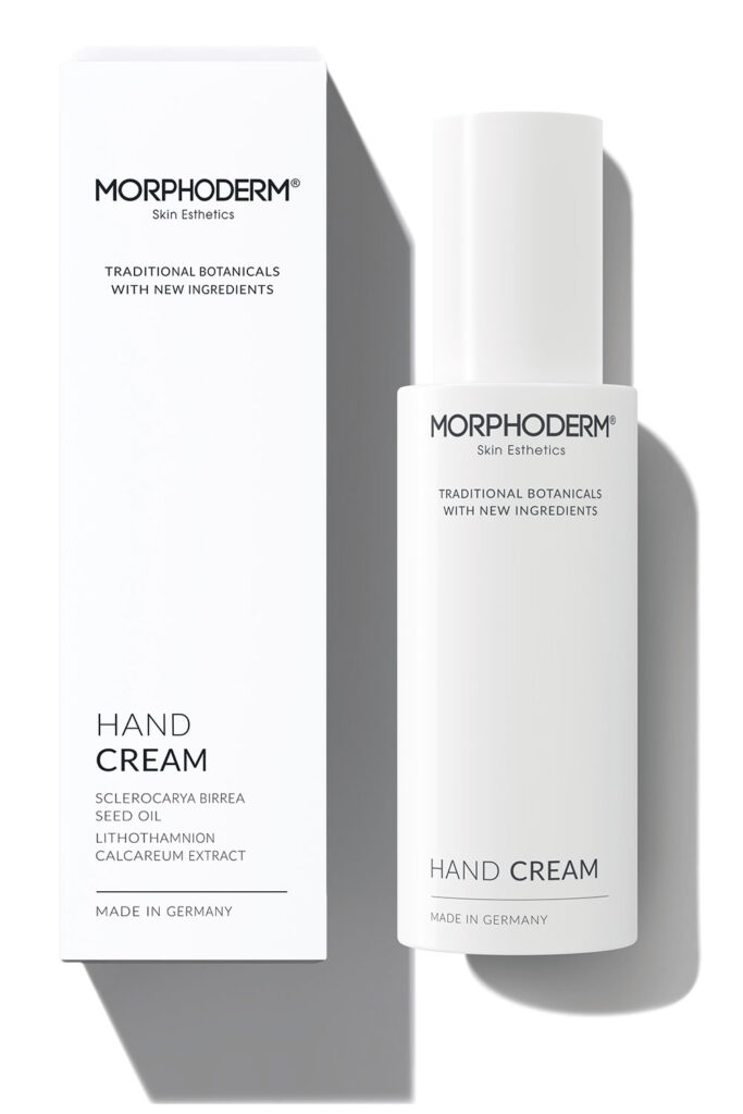 Pflanzliches Kollagen und Marulaöl in der Hand Cream von Morphoderm tragen zur Regeneration der Haut bei und schützen vor schädlichen Umwelteinflüssen. Ein Moisturizer aus Rotalgen stärkt die Feuchtigkeitsbarriere. Die Pflegeformel entfernt sanft abgestorbene Hautzellen, verbessert die Festigkeit und Elastizität der Haut und reduziert Altersflecken. 50 ml, 79€, www.morphoderm.com