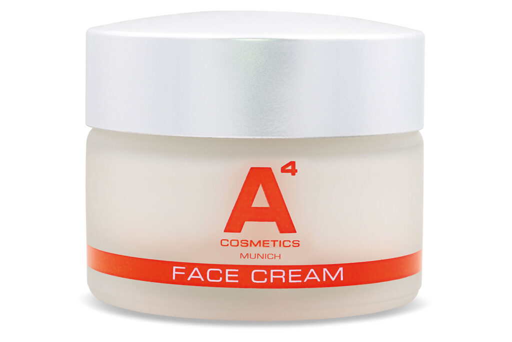 Pflanzlicher Argan-Stammzellextrakt regt in der Face Cream von A4 Cosmetics die hauteigene Zellerneuerung bis in tiefere Hautschichten an. Das heißt weniger Falten und strahlende Haut. Unterstützt wird die Wirkung von Inhaltsstoffen wie Arganöl, Squalan und Hyaluronsäure. 50 ml, 184 €. www.a4cosmetics.de