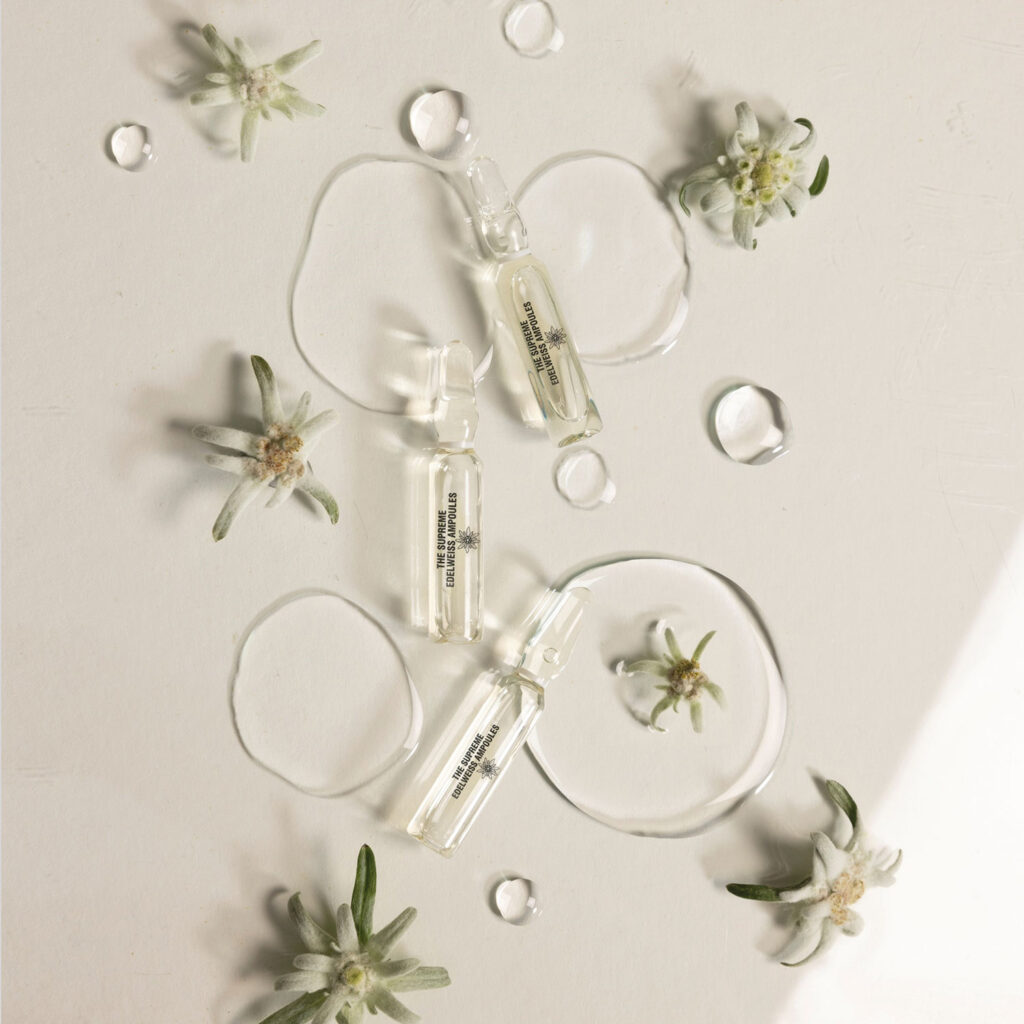 Edelweiß ist das Herzstück der Supreme Edelweiss Ampoules von Dr. Bouhon, die die Haut glätten und revitalisieren – zusammen mit dem Peptid Peptidox, Hyaluronsäure sowie einem Phytoextrakt aus sieben Frauenpflanzen. Edelweiß schützt vor vorzeitiger Hautalterung und den Auswirkungen schädlicher Umwelteinflüsse, außerdem stärkt es das Hautmikrobiom. 14×2 ml, 37,99 €. www.drbouhon.com