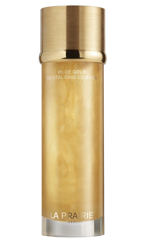 Sichtbare Auswirkungen hormoneller Veränderungen mildert die Pure Gold Revitalising Essence von La Prairie. Mit einem besonderen Wirkstoffkomplex und dem aufhellenden Flavonoid Glabridin unterstützt es den Wiederaufbau der Hautdichte, stärkt Kollagenproduktion und Hautbarriere und verleiht Glow. 130 ml, 480 €. www.laprairie.com