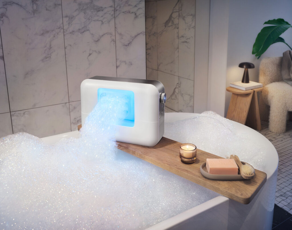 Mit dem Espuro CloudSPA hat Klafs ein ganzheitliches, multisensorisches Erlebnis entwickelt, das bewusste Entschleunigung und Selfcare-Momente in den Alltag bringen soll. Binnen Sekunden entstehen in der Dusche oder in der Badewanne zarte Schaumwolken. Das smarte, flexible Gerät, dessen puristisches Design in Zusammenarbeit mit dem Studio F. A. Porsche entstanden ist, ermöglicht ein besonderes Spa-Ritual aus Pflege, Duft, Licht und Emotion. www.klafs.de