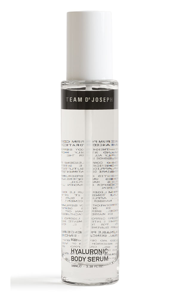 Intensive Feuchtgkeit, Straffung und Regeneration verheißt das Hyaluronic Body Serum von Team Dr Joseph mit biotechnologischer Hyaluronsäure, grünem Kaviar, Kaktusfeige und Aloe Vera. Es ist reich an Antioxidantien. 100 ml, 42 €. www.teamdrjoseph.com