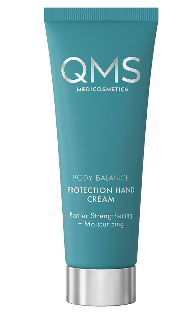 Die schnell einziehende Body Balance Protection Hand Cream von QMS enthält einen Wirkstoffkomplex zur tiefenwirksamen Hydratation und Hautregeneration. Niacinamid, Ceramide und Glycerin stärken die Hautbarriere. 75 ml, 39 €. www.qmsmedicosmetics.de
