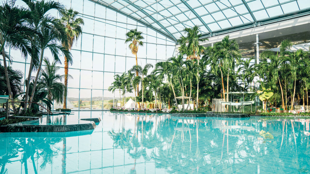 Weitere Highlights sind das Saunaboot Freya, die Kino-Sauna und – ganz neu – die 60 Grad Celsius warme Tropensauna. Dort taucht man nicht nur in üppiges Grün ein, sondern auch in einen Klangteppich aus Vogelgezwitscher, der aus einer Voliere im Außenbereich generiert wird. Nach diesem besonderen Erlebnis trete ich noch eine Reise „nach innen“ an: Seit Kurzem lädt auf der Empore des Palmenparadieses „Immersive Horizon: Breathing Planet“ zu einer Atemmeditation im Rhythmus der Erde ein. Das neue immersive Angebot berührt mithilfe von Licht, Klang, Farben und dezenten Naturaromen alle Sinne und lässt mich für eine Weile die Zeit vergessen und in meine Mitte abtauchen. Man muss nicht immer um die halbe Welt fliegen, um bei sich anzukommen.