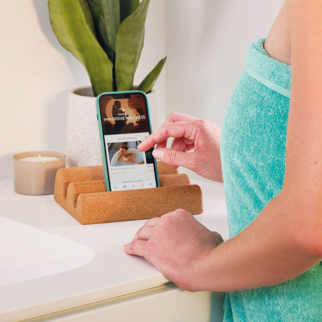 Digitales Herzstück ist die neue Wellbeing App Bluphoria. Damit kann man nicht nur seine Aufenthalte sowie zusätzliche Dienstleistungen, etwa Massagen, buchen, sondern bleibt auch auf dem Laufenden über alle aktuellen Events und Angebote. Außerdem bietet die App Meditationen, Workouts und Yoga an und auch die Zeitslots für immersive Experiences wie „Immersive Horizon: Breathing Planet“ können reserviert werden. Bluphoria ist auch der Name der neuen Produktwelt der Therme wie Körperpflege und Badetextilien.