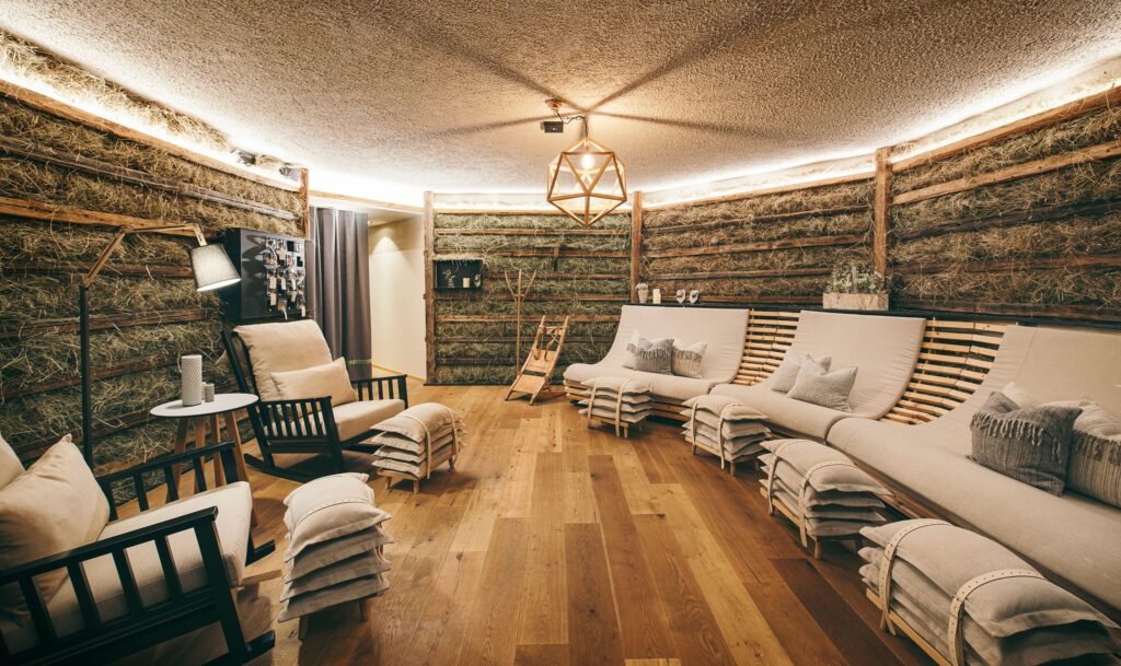 Dass Kräuter in der Küche landen, ist nichts Neues. Und doch kann man sie differenziert einsetzen. Das Kräuterhotel Edelweiss im schweizerischen Rigi etwa verwendet ausschließlich Schweizer Rohstoffe und setzt Akzente mit längst vergessenen Kräutern aus dem eigenen Alpenkräutergarten. Bei herbalen Überraschungs-Menüs können die Gäste die Vielfalt der pflanzlichen Aromen erleben. Und in der Kräuter Werkstatt lernen sie, die Kräuter für Leckereien nach alten Methoden selbst zu verarbeiten, etwa in einem Fermentier-Kurs. Doch wie gelingt der Brückenschlag von der Küche ins Spa? Sie könnten damit beginnen, für die Aufgüsse in der Sauna ätherische Öle aus heimischen Kräutern einzusetzen statt aus exotischen Gewächsen. Das Biohotel Gitschberg in Meransen verwendet in seiner Bio Heu-Sauna handgemähtes Bergheu, ebenso wie in der Heu-Lounge, wo über 2000 Kilo davon in der Wandverkleidung stecken.