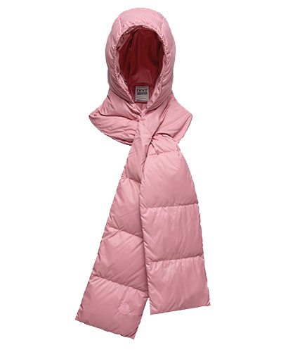 Pretty in Pink Der trendige Daunenschal mit Kapuze wärmt und sieht richtig edel aus. 550 €. www.moncler.com