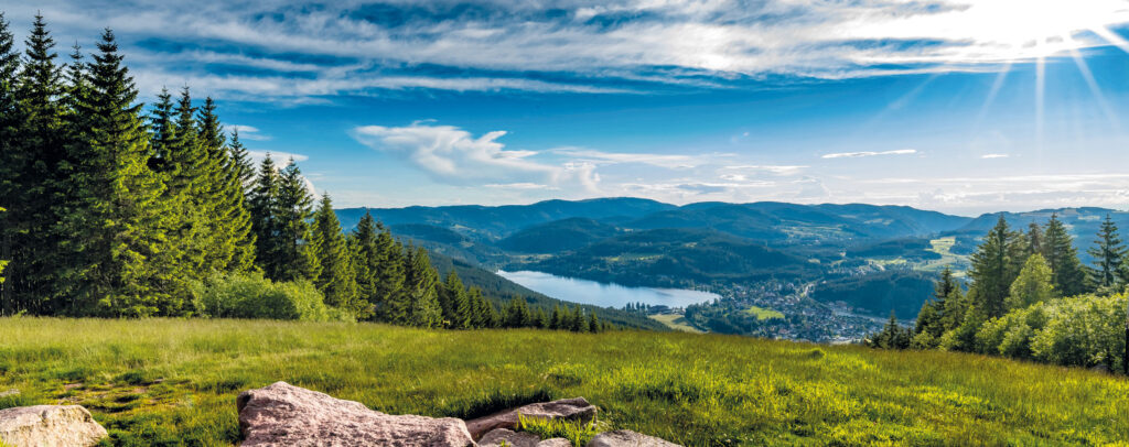 Seen gibt es im Schwarzwald reichlich Als Karsee, Stausee oder Natursee laden sie zu vielerlei Aktivitäten ein: Zu Uferspaziergängen und Rundwanderungen, zum Baden, Wassersport, Angeln – und natürlich zum Genießen der malerischen Naturkulisse in sattem Grün plus frischer, prickelnder Schwarzwaldluft. Der Mummelsee an der Schwarzwaldhochstraße nahe Baden-Baden gilt inzwischen auch als „Rummelsee“. Dennoch: dieser tiefdunkle, mystische Karsee, in dem der Sage nach Nixen und der Mummelseegeist leben, ist einen Besuch wert. Im südlichen Schwarzwald sind Titisee und Schluchsee beliebte Ausflugsziele. Der Titisee, in der Eiszeit durch den Feldberggletscher entstanden, zählt mit seiner Seestraße zu den bekanntesten Ausflugszielen in Deutschland.