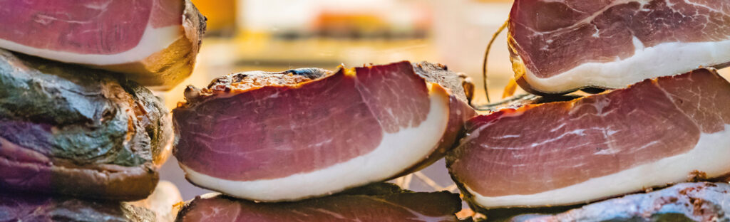 Schwarzwälder Schinken Neben der Schwarzwälder Kirschtorte ist dies eine weitere Spezialität der Region. Der echte darf nur in der Region hergestellt werden und wird über Tannen- und Buchenholz geräuchert. Je länger, desto delikater ist sein Aroma. Er gehört auf einen typischen Vesperteller. Dazu schmeckt ein herb-frisches Tannenzäpfle-Bier.