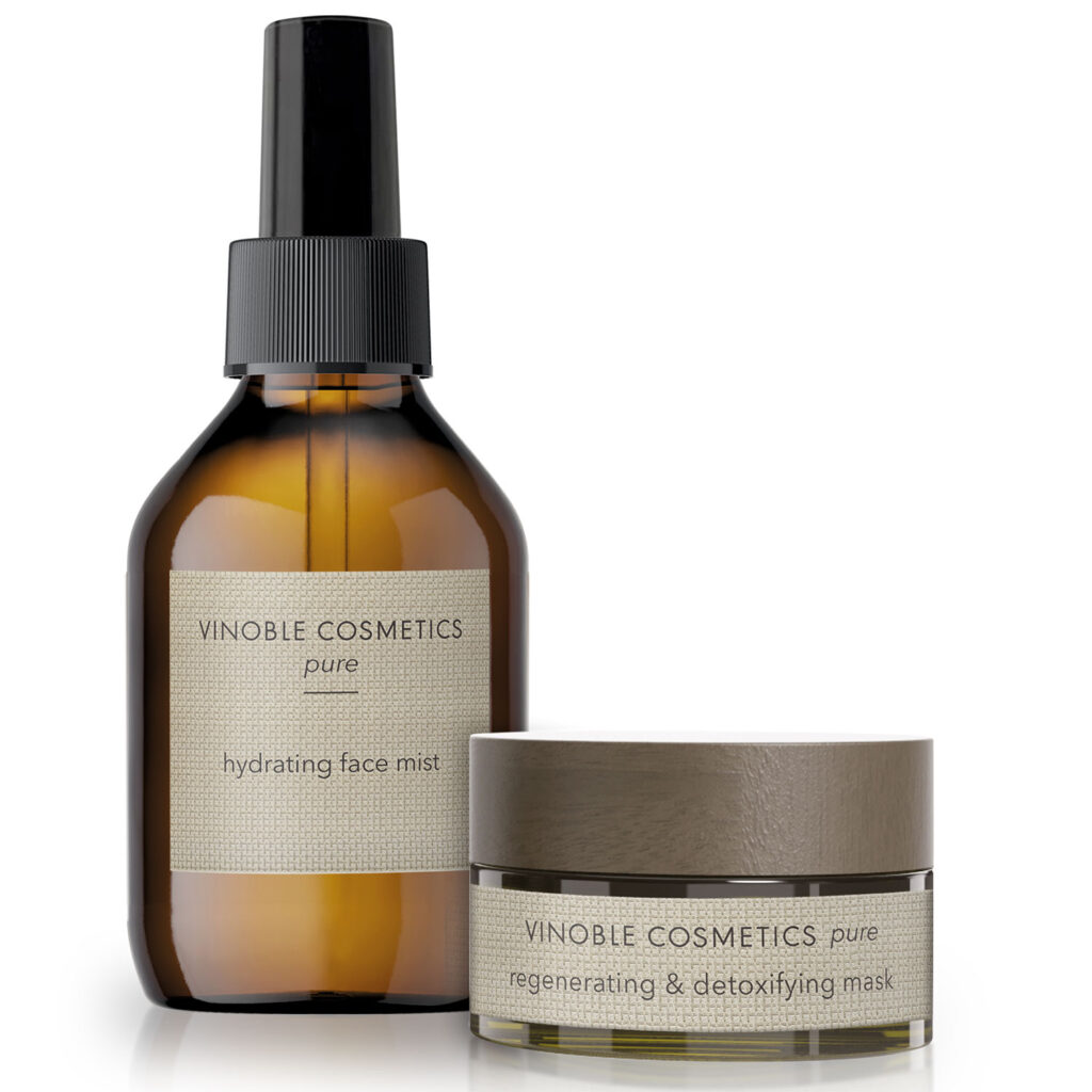 Die regenerierende und entschlackende 2 in 1 Transformationsmaske von Vinoble enthält Stammzellen aus Damaszener Rose und Traube sowie Bio-Traubenkernöl. Der Hydrating Face Mist mit Ingwer-Minz-Extrakt und Rosen-Limetten-Wasser erfrischt und mildert Pigmentflecken 50 ml, 199 €, sowie 100 ml, 59 €. www.vinoble-cosmetics.at