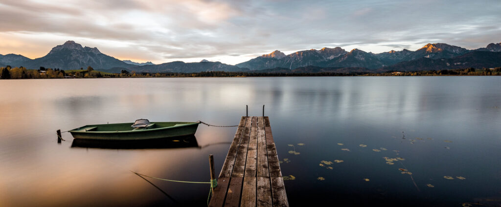 - Alatsee Um den türkisfarbenen Bergsee bei Füssen ranken sich zahlreiche Mythen. Er eignet sich ideal zum Baden und Abschalten.