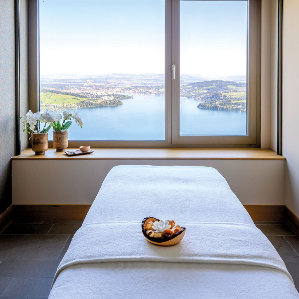 Bürgenstock Resort Lake Lucerne Das imposante Resort thront hoch über dem Vierwaldstättersee und vereint ikonische Architektur mit alpiner Ruhe auf höchstem Niveau. Herzstück ist das 10 000 Quadratmeter große Alpine Spa mit seinem außergewöhnlichen Infinity Pool, Hydrothermal Journeys, Private Spa Suiten und maßgeschneiderten Retreats. Saunen, Hammam, Ruhebereiche und eine kuratierte Beauty Lounge schaffen Raum für Regeneration mit Weitblick. Das Spa hat nun exklusiv das Spa-Angebot mit der Marke myBlend erweitert, in deren Mittelpunkt innovative Treatments mit einer speziellen LED-Maske stehen. burgenstockresort.com/de/spa