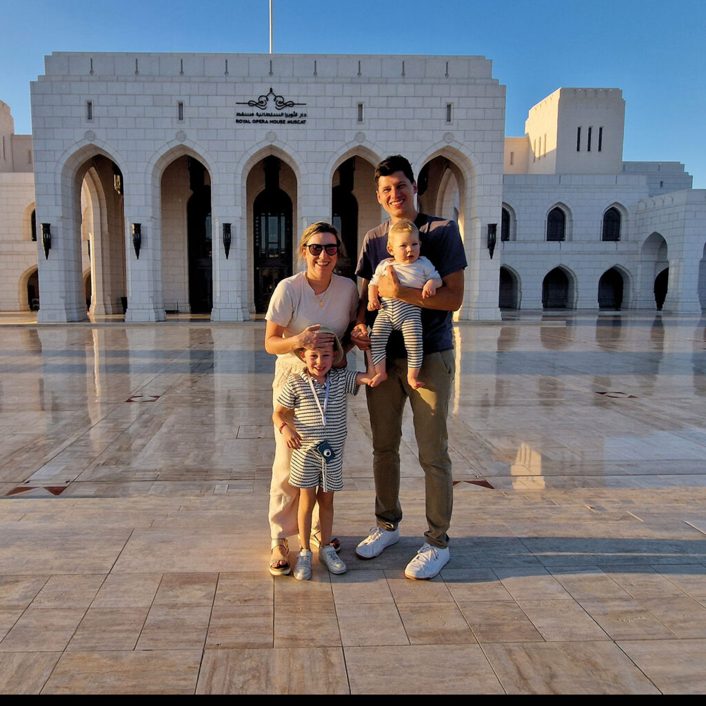 Anne Berit Bader und Familie beim um die Wette strahlen mit dem prachtvollen Königlichen Opernhaus