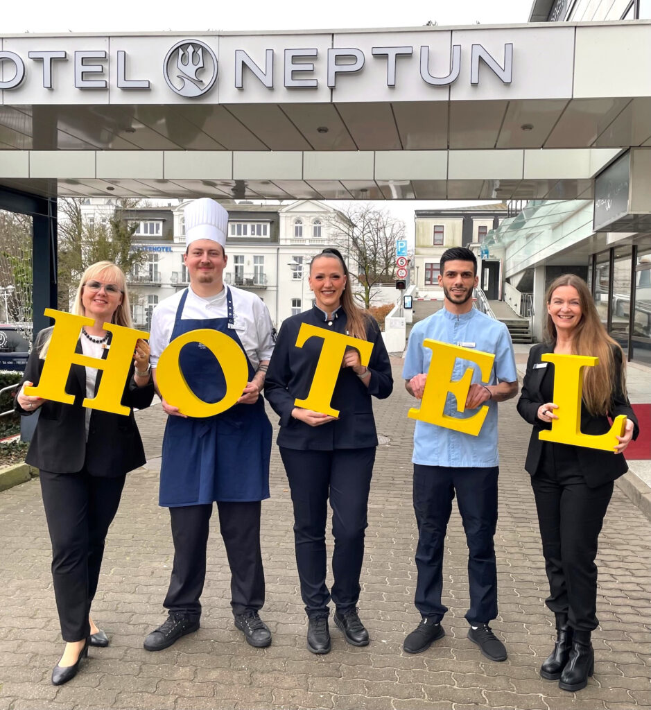 Auch eine Verlosung der ikonischen Leuchtbuchstaben gehört dazu. Die Erfolgsgeschichte des Hauses begann im Juni 1971 mit dem Anspruch, jeden Aufenthalt zu etwas Besonderem zu machen. 55 Jahre später blickt man auf über neun Millionen Gäste aus mehr als 120 Ländern zurück. Im Laufe der Jahrzehnte hat sich das Neptun zu einer starken Marke entwickelt und als Urlaubs- und Wellnesshotel mit Original-Thalasso-Angeboten und Tagungsmöglichkeiten etabliert.