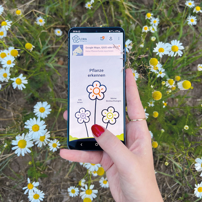 Praktische Hilfe für unterwegs: die App Flora Incognita. Einfach ein Foto von Kraut, Strauch-, Baumblatt oder Blüte machen und schon wird angezeigt, um was es sich dabei handelt – mit Prozentangabe hinsichtlich Treffsicherheit. Außerdem enthält sie die Steckbriefe vieler heimischer Pflanzen und Sie können Ihre Funde auf einer eigenen Beobachtungsliste sammeln. Die kostenlose App ist Teil eines Forschungsprojekts, das den Naturschutz verbessern will.